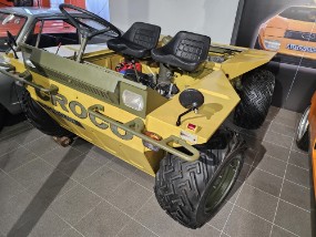 "CROCO" steht für "Cross Country", also die Geländetauglichkeit dieses Offroaders. Zudem kann das äußerst gelenkige Wankelfahrzeug mit wenigen Handgriffen mittels Turbelle und Schwimmkörper zu einem motorisierten Kleinboot umgerüstet werden.