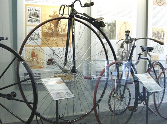 Rechtzeitig zum Jubiläumsjahr 2017, in dem die Erfindung des Fahrrades ihren 200. Geburtstag feiert, ist es nun der Museumsleitung gelungen, eine weiteres wichtiges Fahrzeug für die Zweiradausstellung zu bekommen. Beginnend mit dem ersten Fahrrad der Welt, der Drais´schen Laufmaschine aus dem Jahr 1817 ist neben Tretkurbelrad, Hochrad und den ersten Sicherheits-Niederrädern nun auch das erste motorisierte Zweirad von Gottlieb Daimer aus dem Jahr 1885 zu sehen, welches als erstes Motorrad der Welt gilt. „Wir freuen uns sehr, dass wir den Daimler Reitwagen vom Deutschen Zweiradmuseum in Neckarsulm als Leihgabe bekommen haben! Das unterstreicht nochmals unseren Anspruch eines der wenigen Museen weltweit zu sein, welches nun nahezu lückenlos die komplette Fahrzeuggeschichte vom ersten Zweirad aus dem Jahr 1817 bis hin zum Wasserstoffauto der Zukunft zeigen kann“ - erläutert Stiftungsvorstand und Museumsgründer Horst Schultz.