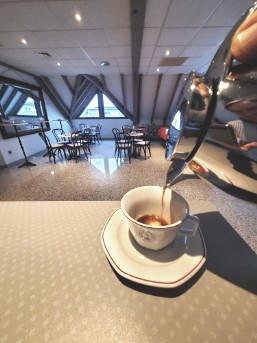 Im Obergeschoss befindet sich eine Coffee-Lounge im Wiener-Kaffeehaus-Stil. Hier können Sie bei einer Tasse Kaffee oder einem Kaltgetränk eine Pause machen oder die bereits gewonnenen Eindrücke gemütlich nachwirken lassen.